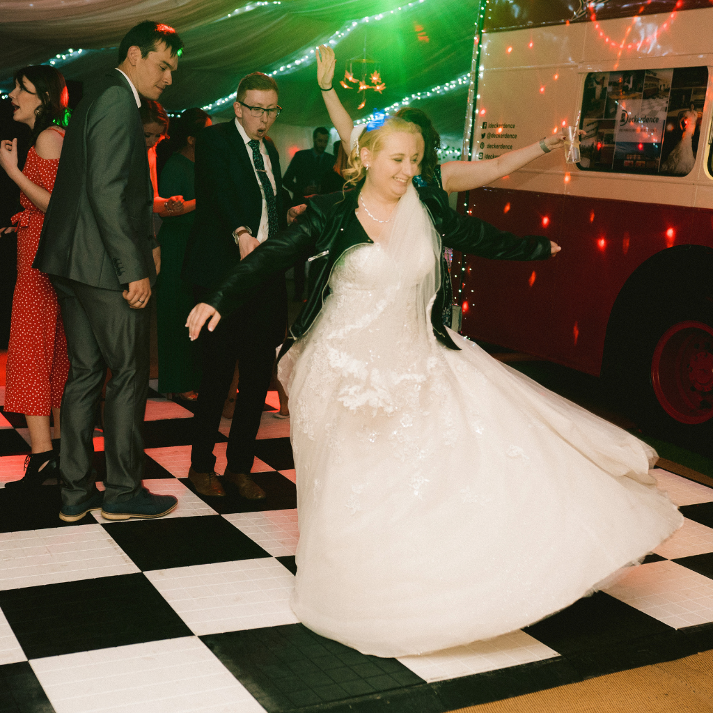 💃 5x5m chequerboard dancefloor with overhead disco lights
